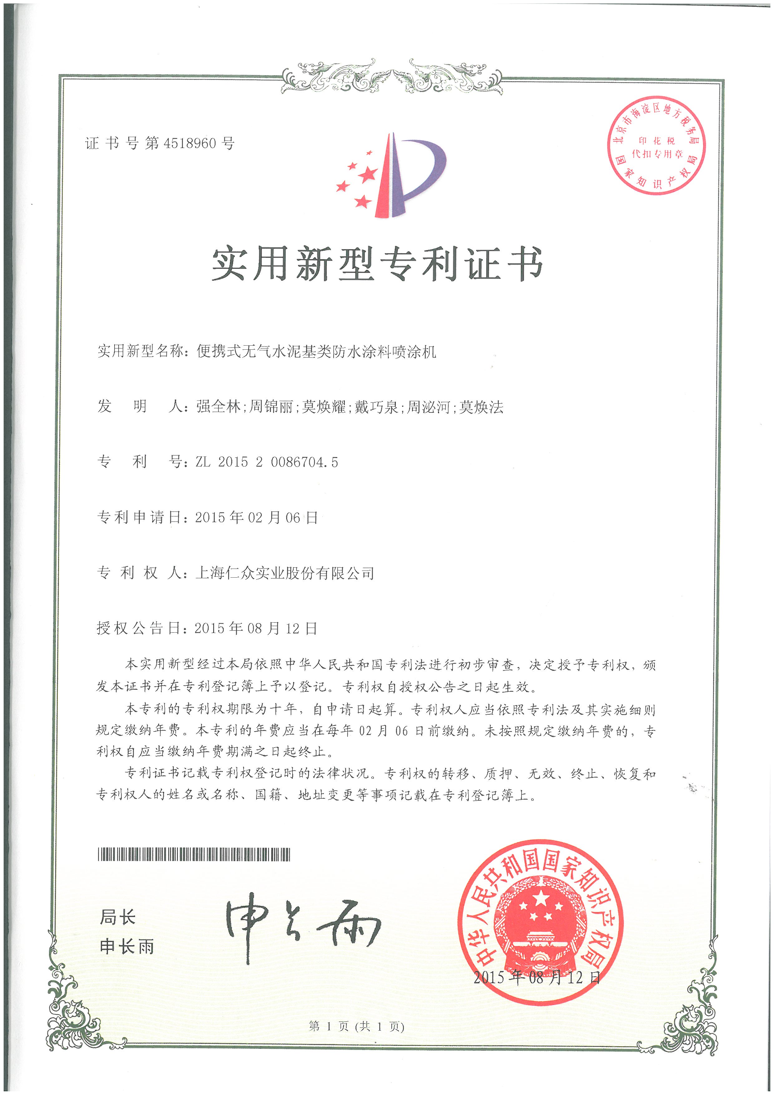 你所在的位置:首頁 > 關(guān)于仁眾 > 專利證書
