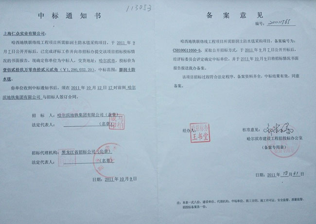哈爾濱地鐵工程中標(biāo)通知