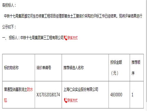 中標(biāo)中鐵十七局集團(tuán)滹沱河生態(tài)修復(fù)工程項(xiàng)目納基膨潤(rùn)土防水毯