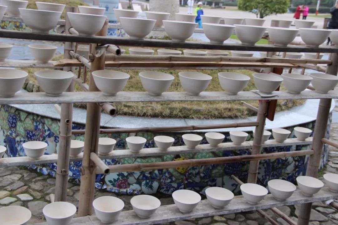 隨后講解員將我們帶到了坯房,這就是古代的制瓷作坊,分為正間、廒間、泥房和內(nèi)院,看到一位位老師傅拿著一根長棍攪拌泥水,雙手互捋,隨著車盤的旋轉(zhuǎn),一個(gè)碗的雛形就出現(xiàn)了,惟妙惟肖;還有手工在泥碗上畫花,栩栩如生,在沒有任何測量儀器的幫助,靠得是眼觀、手摸、耳聽,他們一絲不茍,一刀一刀地旋削,此絕非一朝一夕之功,是陶瓷人長其豐富經(jīng)驗(yàn)的結(jié)晶……看著一個(gè)個(gè)年邁的手工老藝人心靈手巧的制作著,也看到了一個(gè)個(gè)瓷器是怎樣從瓷土經(jīng)過拉坯、印坯、利坯、繪畫、上釉等各工序最終變成精美的碗、瓷器,真心感嘆這精湛的制作手藝巧奪天工。接著我們分別參觀了元代饅頭窯、明代葫蘆窯,因?yàn)楦G形分別象饅頭和葫蘆而得名,雖經(jīng)歷一些磨難,但保存至今,復(fù)活后依然窯火不斷,他們不僅孕育出了享譽(yù)世界并在拍賣市場上屢創(chuàng)新高的著名元青花瓷,且元代景德鎮(zhèn)首創(chuàng)的釉里紅及歷史上最早的官窯瓷同樣出自此爐。走過了清代鎮(zhèn)窯我們來到了宋代龍窯,龍窯又稱長窯,一種半連續(xù)式陶瓷燒成窯,它依一定的坡度建筑,以斜臥似龍而得名,龍窯是全國重點(diǎn)文物保護(hù)單位。它是世界上現(xiàn)存一條還在使用,最古老的柴燒龍窯。窯是依山而建,窯身全長34.4米,內(nèi)長30.87米,猶如一條巨龍從天而降一般,所以當(dāng)?shù)鼐用窬桶阉凶觥褒埜G”。這些古窯向人們充分展示了古代瓷業(yè)建筑,明清時(shí)期景德鎮(zhèn)手工制瓷的工藝過程以及傳統(tǒng)名瓷精品。看到熱情的名俗老藝人賣力的吆喝,為他們的誠摯而感到,于是就停下腳歇歇,喝口茶,頓時(shí)倍感暖意濃濃。講解員也順便介紹了窯的歷史,一口窯能燒出上百甚至上千件的陶瓷,工藝復(fù)雜精致的瓷器,有很多道工序甚至光進(jìn)窯燒制就要四五次,如果其中一道工序出問題那就整個(gè)作品就廢了,所以講究的是專人專職,分工非常精細(xì),每道工序追求的是極致。